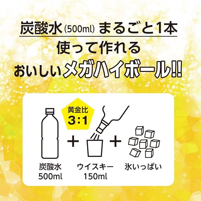 炭酸水(500ml)をまるごと1本使っておいしいメガハイボールが作れます。