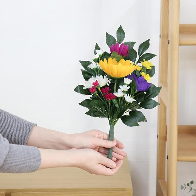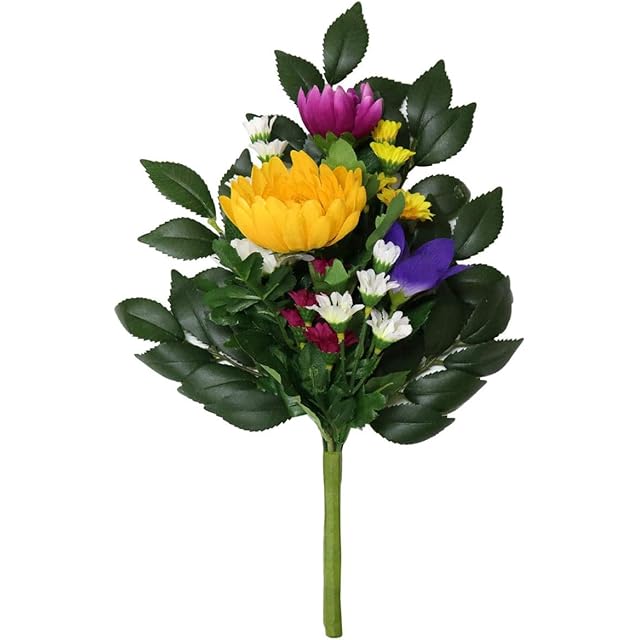 お仏壇用の仏花です。<br> 夏の時期には生花だとすぐ枯れてしまい、水の入れ替えも大変。<br> この仏花は枯れる心配がないので、お手入れがとても楽な仏様へのお供え用の造花です。 <br> 旅行や長期不在の時などにも最適。もちろん普段使いにも最適です。 <br> <br> ※1束での販売です。1対(2束の場合は数量2にしてください。) <br> <br> 【お手入れ方法】 <br> ホコリなどがついたら水洗いで汚れを落とします。半永久的にいつまでも綺麗な状態でお花をお供えできる便利商品です。 <br> <br> 【お客様の声】 <br> 仏様に造花なんてあげたら失礼 というお声もお聞きしますが、実際にお寺様に聞くとお寺でも造花をお供えしているそうで、特に問題は無いと言う事です。 <br> 枯れているお花をお供えするよりも造花でも綺麗なお花をお供えしている方が、ずっと良いとお聞きしました。 <br> <br> 【サイズ】<br> 高さ:約37cm 幅:約23cm