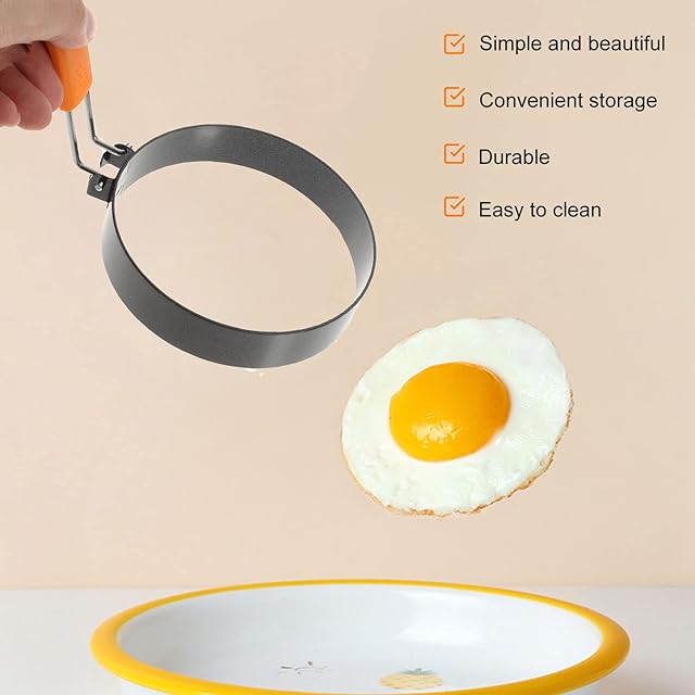NUOLUX 目玉焼き リング エッグリング 型 目玉焼き型 くっつかない 卵フライヤー ホットケーキ パンケーキ 金型 簡単使い 大+小 2個/セット(ハンドルカラーランダム)