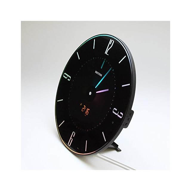 商品名:リズム(RHYTHM) 掛け時計 置き時計 電波時計 365色 LED 推し色 変更機能付き 黒 イロリア (Iroria) 8RZ197SR02 φ27x2.1cm