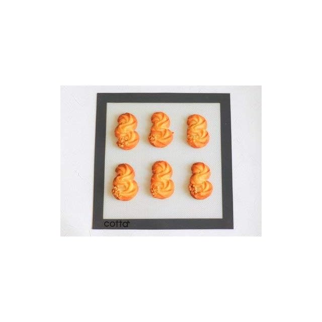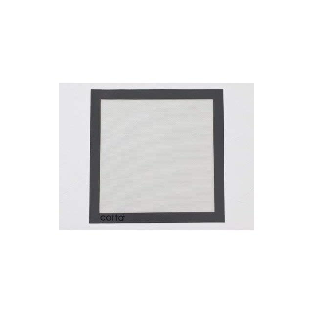 cottaオリジナルの正方形シルパットです。つるっとした表面です。クッキー・サブレ・マカロンなどの焼成時に天板に敷いておくと、生地の焼きコゲがなくムラのない均一な焼き上がりになります。また、アメ細工・チョコレート細工の作業用マットとしてもご使用いただけます。