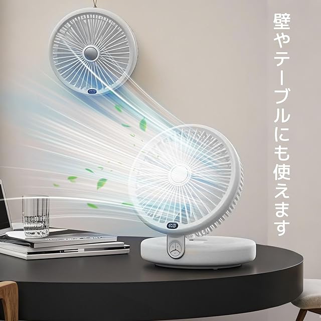 商品名:sumiren サーキュレーター 扇風機 DCモーター 静音 強力送風 5000mA大容量 折りたたみ式 LEDライト機能付き LED3調節可能 卓上扇風機 左右首振り 上下角度調節 Type-C充電式 壁挂可能 一台多役 空気循環 換気 タイマー 衣類乾燥 部屋干し 梅雨除湿 冷房 衣類乾燥寝室 トイレ用 お手入れ簡単 日本語取扱説明書付き