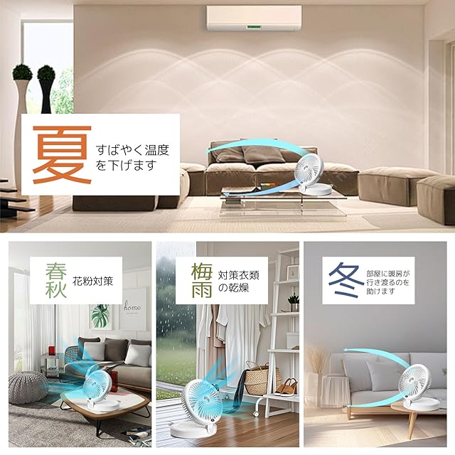 【四季を通じてサーチーュレーターです】 本サーキュレーターは様々な季節に使えます室内の空気の流れを素早く助け、季節によっては冷気や暖房の輸送を助けます。また、また、商品は便利な機能を備えており、お年寄りから子供まで気軽に手に取ることができます。