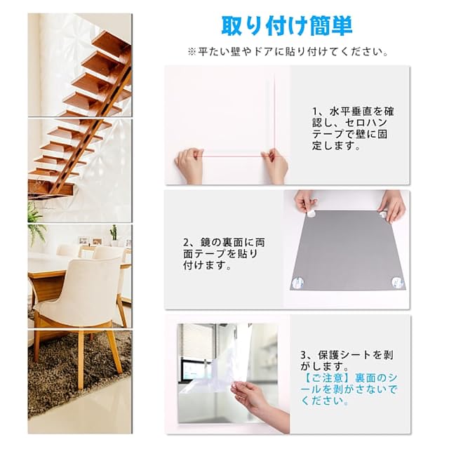✅【軽量で安全】 反射層、保護層、飛散防止層の3層構造を採用しており、鏡面が破損した場合でも、破片の飛散を防ぎ、ケガのリスクを大幅に軽減することができます。1枚あたりの重さは約170g、厚みは約1.8mmと非常に軽量です!