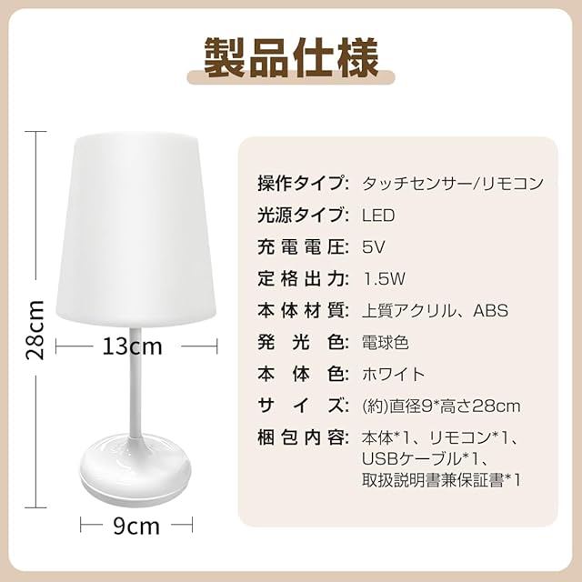 商品名:C-J-W ledテーブルランプ コードレス USB充電式 間接照明 寝室 卓上 授乳ライト デスクライト 10段階調光 リモコン付き タッチライト テーブルライト 電気スタンド 寝室 枕元 ライト スタンドライト おしゃれ ベッドサイドライト 常夜灯 目に優しい 省エネ メモリー機能 5分/10分/30分スリープタイマー