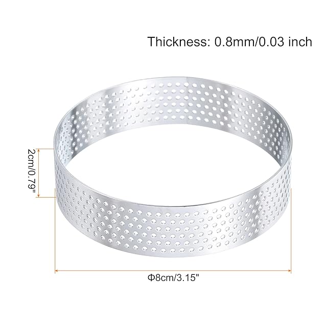 uxcell 6個のステンレス製タルトリング3.1"パーフォレーションメタルサークルベーキングデザートムースラウンドケーキリングノンスティックホームキッチンフードチーズ製造ツール