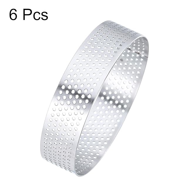 商品名:uxcell 6個のステンレス製タルトリング3.1"パーフォレーションメタルサークルベーキングデザートムースラウンドケーキリングノンスティックホームキッチンフードチーズ製造ツール