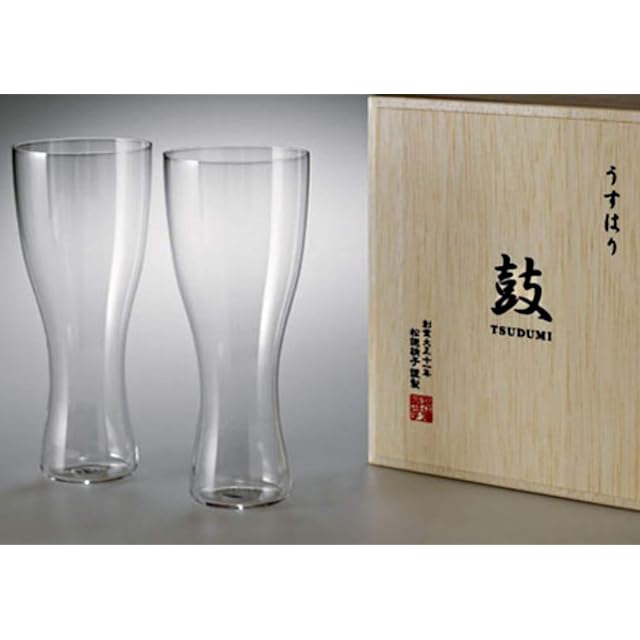 商品名:うすはり ビアグラス セット 鼓 木箱2個セット 松徳ガラス