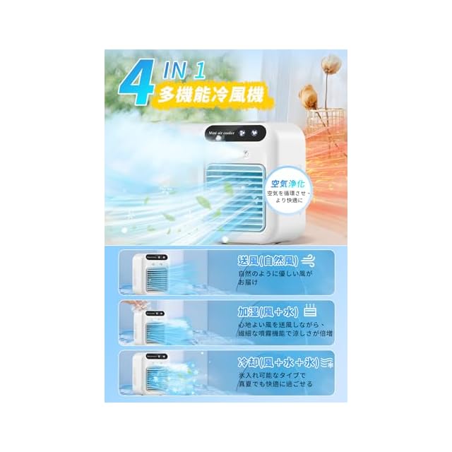 商品名:冷風機 冷風扇 強力 【2024新登場!】 MACWE 卓上クーラー 卓上冷風機 強力送風 1台4役 小型 静音 500ML大容量 2段階風量 上下角度調整 冷風扇 2段階噴霧量 氷いれ可能 ミニクーラー 置き型 冷風扇風機 クーラー並み 涼しい冷風機 コンパクト USB 充電式 軽量 熱中症 暑さ対策 オフィス 寝室 キャンプ用 省エネ プレゼント(ホワイト)
