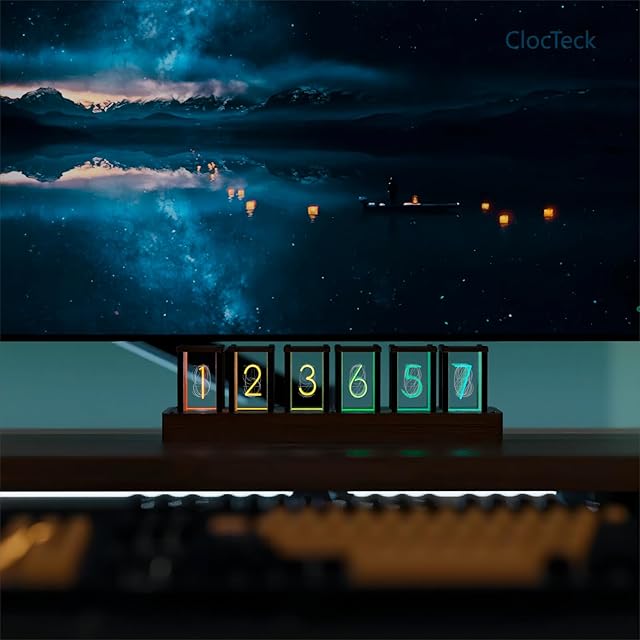 ClocTeck ニキシー管 時計 Wi-Fi同期 & 1600万色カスタマイズ可能、レトロモダン木製デジタル時計