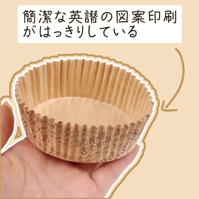 1.【大容量セット】100枚入りのベーキングカップセットで、家庭用から業務用まで幅広く活躍。大量に使えるため、イベントやパーティーにも最適です。 2.【安全で高品質】食品グレードの紙製で、臭いがなく、油が染み込みにくいグリースプルーフ仕様。オーブンや電子レンジにも対応し、焼き菓子作りに最適です。 3.【使いやすいサイズ】直径9cm×高さ3cmの標準サイズで、マフィン、カップケーキ、蒸しパンなど幅広いレシピに対応。しっかりとした厚みで型崩れしにくい。 4.【シンプルなデザイン】落ち着いた印刷デザイン、さまざまなシーンに調和。ナチュラルでおしゃれな雰囲気を演出します。 5.【幅広い用途】カップケーキ、マフィン、パン作りに最適。誕生日、パーティー、学園祭、バレンタインなど、さまざまなイベントで活躍するアイテムです。