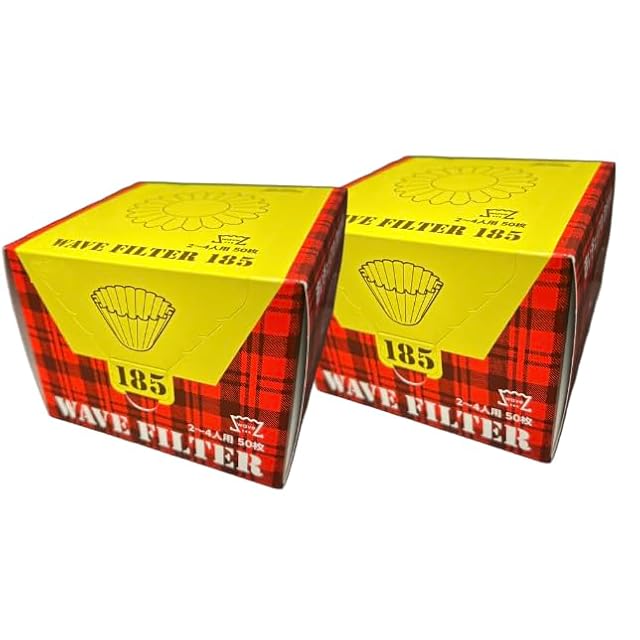 【 ウェーブシリーズ 185 タイプ専用 】<br> コーヒーフィルター ホワイト 2~4人用 50枚入り×2個 <br> ( ウェーブ ウェーブ型 フィルター ウェーブドリッパー ロシ KWF-185 1杯用 )<br> フィルターは袋ごと取出しやすく・袋ごと収納しやすいパッケージ<br> <br> 【ウェーブシリーズ】 誰もが手軽に、ベストな味わいをお楽しみいただけるシリーズ<br> <br> 【20個のウェーブ】 ウェーブフィルター185(155)は、ドリッパーとの接触面が少ないから、長時間フィルター内のかたよったところにお湯がたまらず、すみやかにドリップされる<br> <br> 【ウェーブゾーン】 かたよってお湯を注いでも、ウェーブゾーンは底が平らなので粉に均一になじみやすい1~2人用 (目安)<br> <br> 【使用上の注意】 コーヒー濾紙は、サイドと底部のチャック止め部分を必ず折り曲げて使用する。折り曲げないと抽出中に剥れることがある。また、抽出後の濾紙を摘み上げると底が抜ける恐れがある