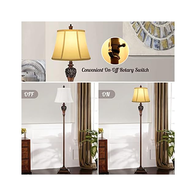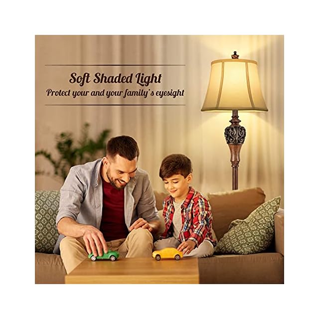 目に優しい明るい照明:プレミアムホワイトファブリックシェードを装備した伝統的なフロアランプは、柔らかなシェード照明を提供し、落ち着きのある快適な雰囲気を作り出します。 グレアのないライトは、空間を明るくするのに十分な照明を提供しながら、あなたとあなたの家族の目をケアします。 リビング、寝室、書斎での読書、仕事、リラックスなど、毎日のルーチンに最適な家庭用照明です。