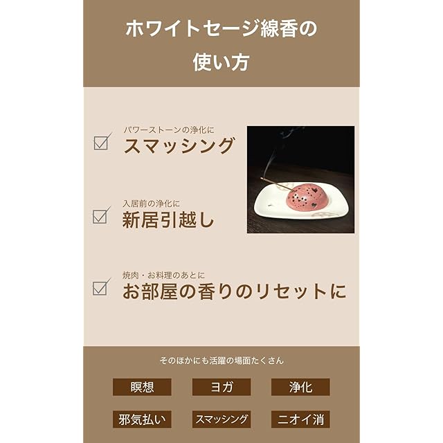 原材料:ホワイトセージ カリフォルニア産、椨粉 Made from White sage leaves