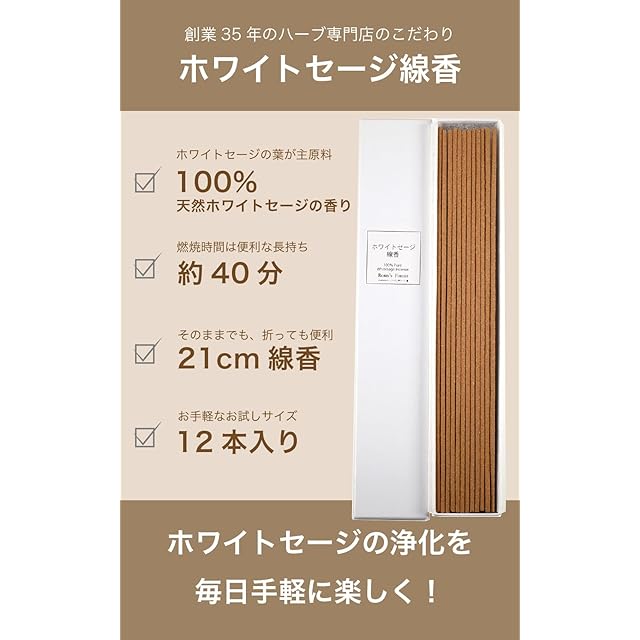 種類: ホワイトセージ線香12本 1本21cm (約40分) 箱入り7g
