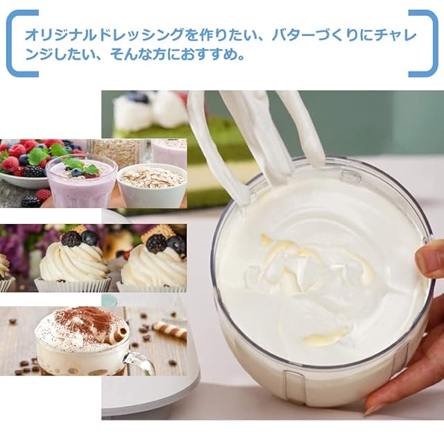 ■【適用範囲】:メレンゲを作りたい、生クリームを泡立てたいけれど手が疲れる、飛び散ってキッチンが汚れる。泡立て中は他のことができない。オリジナルドレッシングを作りたい、バターづくりにチャレンジしたい、そんな方におすすめ