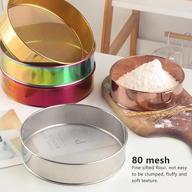 8インチ小麦粉ふるい、 丸ふるい細かいメッシュ、 80メッシュステンレス鋼丸ふるい、 小さな小麦粉ふるい、 多機能ベーキングシフター デコレーションケーキ、パイ、ペストリー、カップケーキを焼くために
