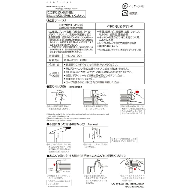 商品名:レック(LEC) ふきん掛け 粘着 テープ 5本ホワイトKP-246