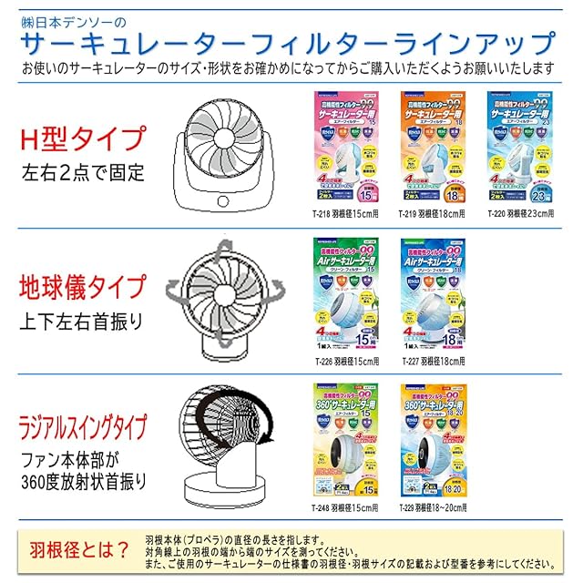 ㈱日本デンソー Air サーキュレーター用 クリーンフィルター 羽根径18cm用 1組入 上下左右首振りタイプ 抗ウイルス 抗菌 抗カビ 消臭 高機能性フィルター99 サーキュレーターフィルター 左右回転+上下首振り 地球儀タイプ 日本製 T-227
