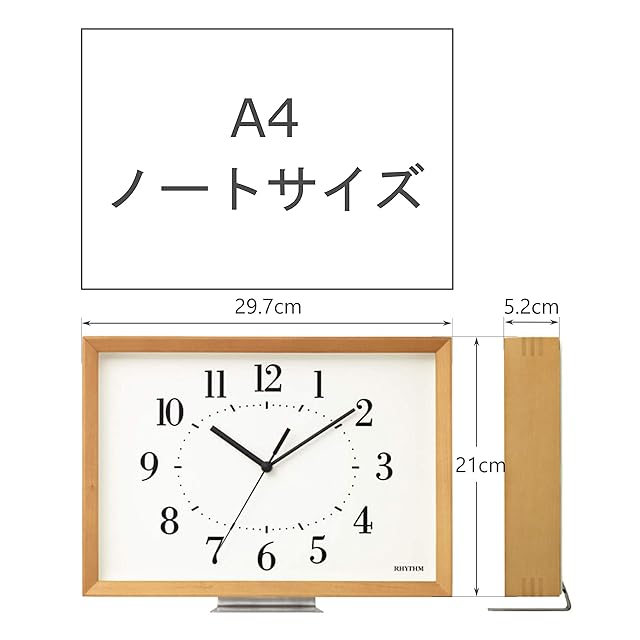 商品名:リズム(RHYTHM) 電波時計 掛け時計 置き時計 兼用 A4 サイズ 木枠 インテリアクロック ライトブラウン 21x29.7x5.2cm RHYTHM PLUS 8MY557SR06