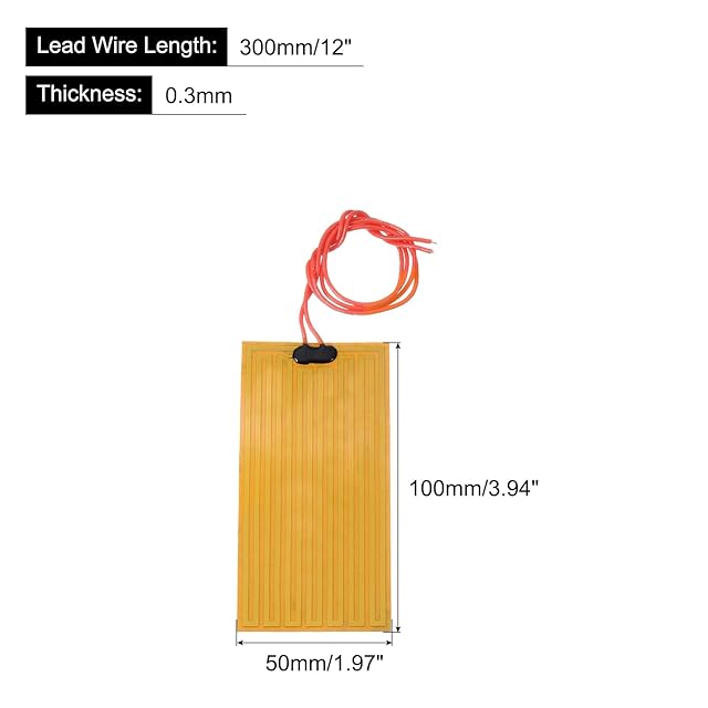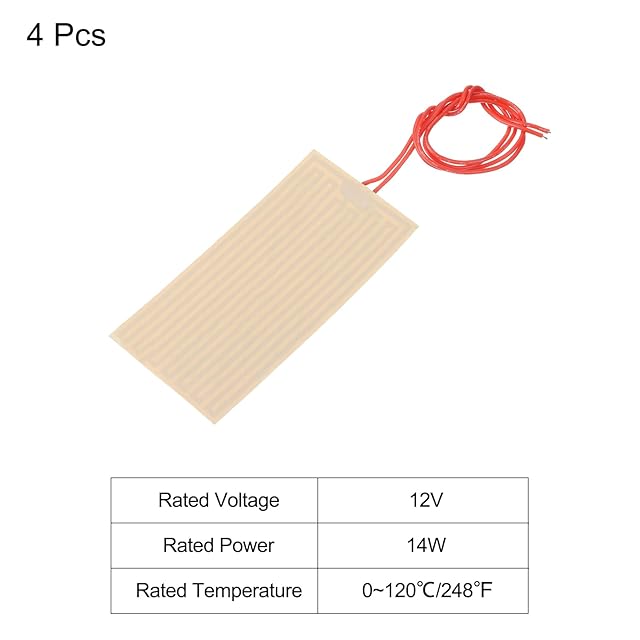 uxcell ヒーターフィルム加熱板 ポリイミドヒートパッド 粘着性PIヒーターエレメントフィルム ヒーターストリップ 恒温用 12V 14W 100 mmx50 mm 4個