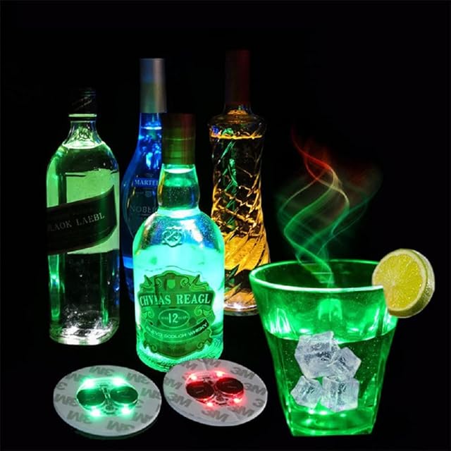 20個マルチカラーLEDバーライトアップコースタードリンクカップ、ワイン酒ボトルコースター雰囲気ライトキッチンアクセサリーのためのステッカー