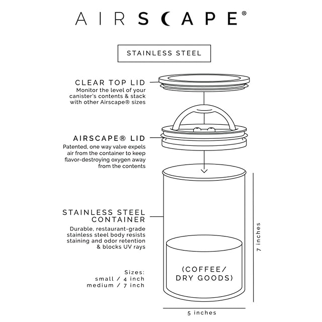 品質重視 - Airscapeコーヒー&食品保存キャニスターは、18/8のレストラングレードのステンレススチール製で、BPAフリーのコンポーネントとエナメル塗装仕上げ。 複数の色をご用意しており、キッチンにポップな色を加えます。 手洗いのみ。