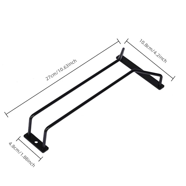 <b>特徴:</b><br /> キャビネットや棚の下にフィットします。<br /> 1~2列のブラックとホワイトのワイングラスホルダー。<br /> ワイングラスを整理するのに非常に役立ちます。<br /> 装飾的で機能的。<br /><br /> <b>詳細:</b><br /> 色:ブラック、ホワイト。<br /> 製品サイズ: 10.8×27×5cm(27cm 1列)、21.6×27×5cm(27cm 2列)。<br /> 製品重量: 155g (27cm 1列)、330g (27cm 2列)。<br /> 梱包: ポリプロピレンバッグ。<br /><br /> <b>商品内容:</b><br /> ワイングラスラック1個。<br /> ネジ入りパック1個。