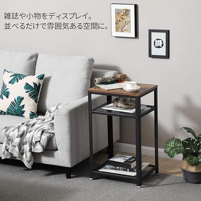 商品名:VASAGLE サイドテーブル ナイトテーブル ベッドサイドテーブル ソファ スリム 二段棚付き 幅40×奥行30x高さ75cm 北欧 収納家具 木目調 コンパクト LET75BX