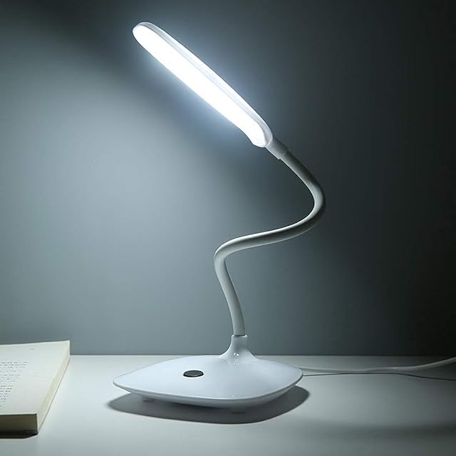 商品仕様:<br> 小型で軽く、純白でシンプルなデザインでインテリアとしても使えます。現代的で先進なLED技術を採用した、3Wの消耗電力は、蛍光灯と比較して約1/5。さらに、シリコンホース材質ので、ライト本体は自身の発熱を抑えます。<br> 軽く触るだけで、ON/OFF 調光操作は一つのボタンに集約されています。すべては片手でLED デスクライトのタッチパネルに触れるだけの簡単操作です。高品質なシリコンホースアーム、360度のあらゆる角度にライトを設定可能。<br> 水銀も放射線も使っていないとてもエコなランプです、子供たちは安心して使用できます。色温度は2700Kなので、暖かい雰囲気を作り出す。<br> 小型、軽量、便利:約142g。小型で軽く、純白でシンプルなデザインでインテリアとしても使えます。<br> <br> USBポート付き、多様な充電モード:<br> USB給電ですから、アダプターとパソコンなど幅広い機種に対応できます、補助照明としてはとても便利です。モバイルバッテリーと合わせば、停電でもお気軽に使えます<br> <br> 注意:1.ランプホルダー背面のメインスイッチ、電気スタンドを使用しない場合は、スイッチを切ることができます。これはランプの寿命を延ばします。<br> <br> 名称:LED デスクライト<br> 光色:充電式 白い光3W<br> 電源入力:DC 5V/1A<br> 電池容量:1200mAh<br> 重さ:約142g<br> 材料:ABS<br> 商品サイズ:42.5*13.3*10cm<br> 梱包サイズ:13.5*11.2*8cm<br> LEDナンバー:12pcs<br> 消費電力:約3W(最大)白い光<br> <strong>パッケージ:</strong>LED本体、USBケーブル、USB電源<br>