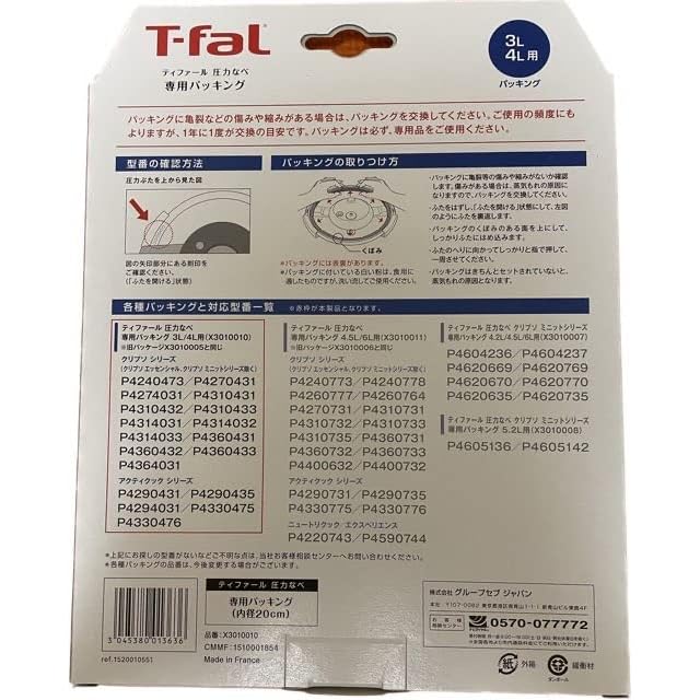 国内正規品 T-fal ティファール 圧力なべ専用パッキング3L/4L用 X3010010 (X3010005(部品番号SS981009)後継商品)