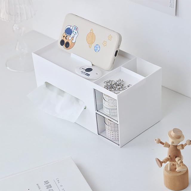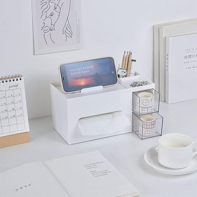 商品名:ティッシュケース スマホスタンド 引き出し付き ティッシュボックス 小物入れ 卓上 文房具 収納 ペン立て リモコンスタンド