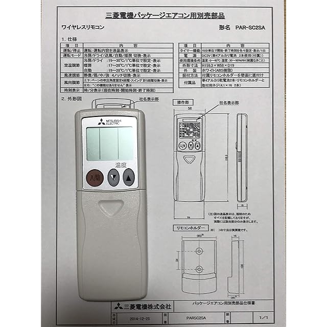 商品名:三菱 ルームエアコン 霧ヶ峰用 ワイヤレスリモコン操作部 PAR-SC2SA