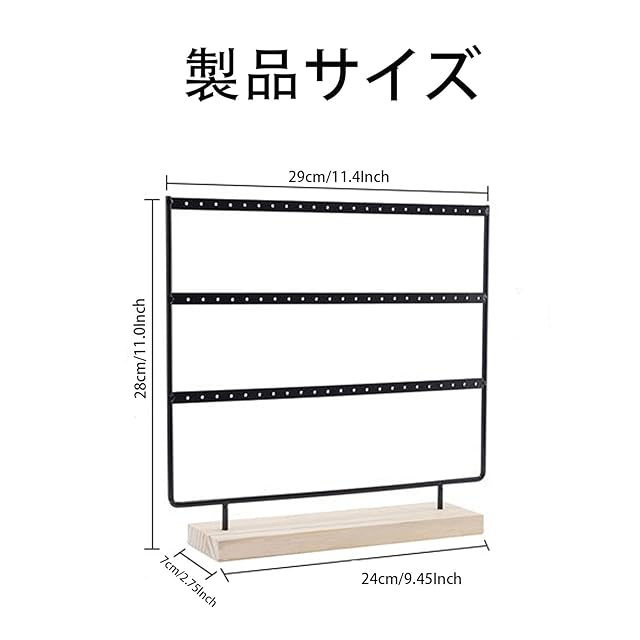 商品名:イヤリングオーガナイザー ジュエリーディスプレイスタンド、取り外し可能なベース付き 3 段イヤリングホルダー、女性や女の子へのギフトに 69 穴ディスプレイスタンド。(ブラック)