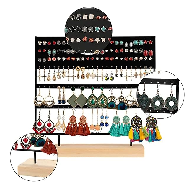 イヤリングオーガナイザー ジュエリーディスプレイスタンド、取り外し可能なベース付き 3 段イヤリングホルダー、女性や女の子へのギフトに 69 穴ディスプレイスタンド。(ブラック)