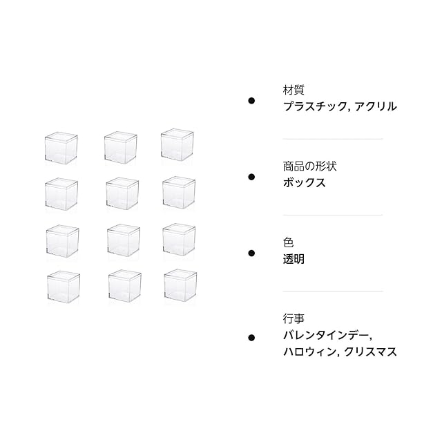 商品名:ギフトボックス 透明 アクリル キャンディー ボックス キューブ ケース プラスチック小分けケース 小物用収納ボックス 立方体 アクセサリー パーツ ビーズ収納 詰め替え容器 12個