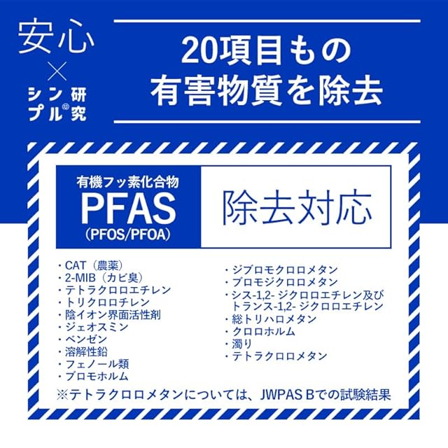 ✅ろ過流量:0.2L/分/浄水能力【遊離残留塩素】:総ろ過水量1600L その他 フッ素 PFAS を含む20項目の不純物を除去できます。