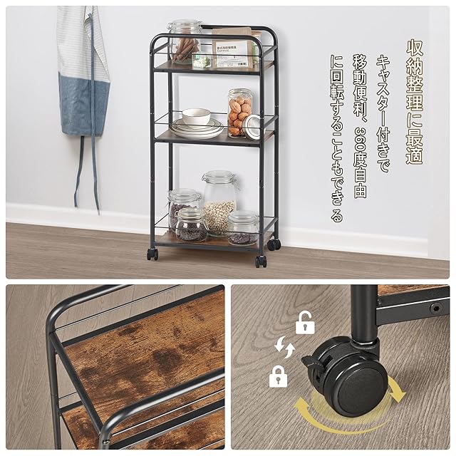 【どんな場面でも活躍】高品質な天然木化粧繊維板天板+スチール材質は採用なので、耐久性と安定性を誇ります。スリムボディーをして、部屋の隙間に自在に配置されています。トイレ収納、ベッドルーム、居間、子供部屋、キッチン、書店、美容室などの使用できます。キッチンワゴン、バスルームカート、ツールカート、ローリングキッチンカート、化粧カート、スチールラックなどとして最適です。