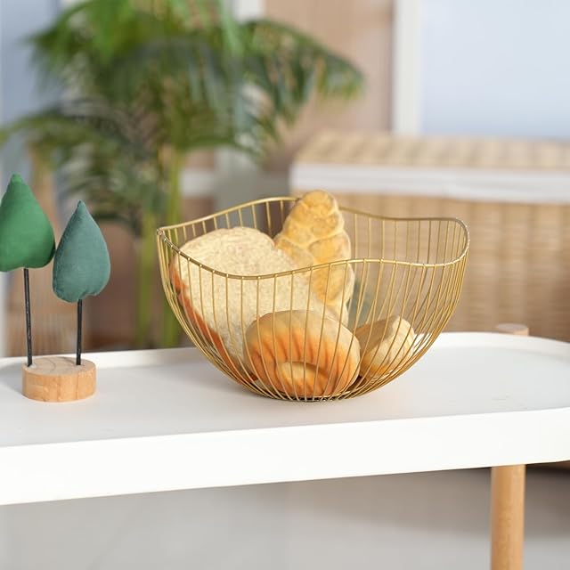 ステンレス製フルツバスケット 耐久性のある金属ワイヤーバスケット 収納・ワイヤー・金属カゴ 25.5x25.5x11.5cm の多目的フルーツ収納アイテム
