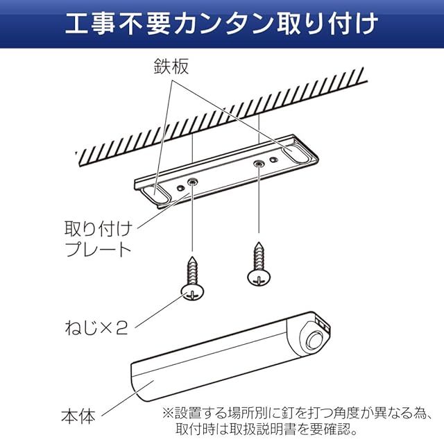 本体サイズ:幅約19.4×奥行約3.5×高さ約29.6cm、取付プレート:幅約17.0×奥行約3.9×高さ約0.7cm※両面テープ除く 本体重量(電池除く):約100g、取り付けプレート(両面テープ除く):約26g 光源:0.5W-LED×4個 全光束(明るさ)ON:約40lm、AUTO Hi:約40lm、AUTO Lo:約12lm 感知センサー:赤外線受動式センサー 明暗センサー:フォトセンサー