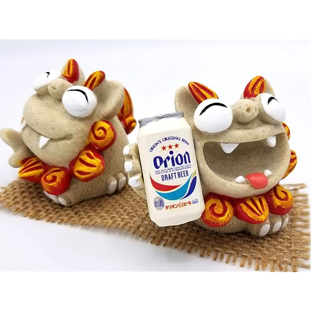 ・オリオンビール缶を最高の笑顔で持つシーサーです。 ・一体あたりのサイズは 高さ5.5cm×横幅6cm×奥行き5.5cm。