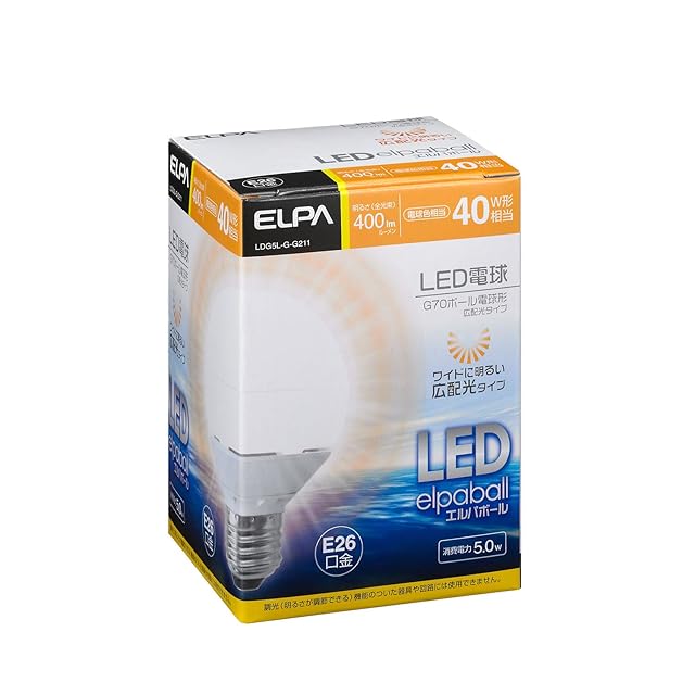 商品名:ELPA LED電球 ミニボール球形 40W形 口金直径26mm G70 電球色 LDG5L-G-G211