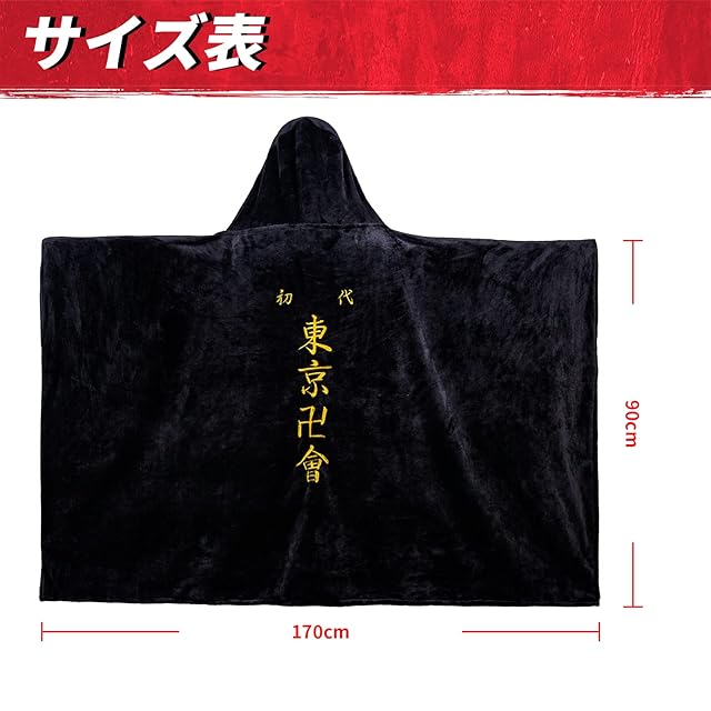 DIROLVON 東京リベンジャーズ 着る毛布 ブランケット フード付き 刺繡スタイル 肩掛け 着脱が簡単 冬に ルームウェア 暖かい ふわふわ 可愛い おしゃれ クリスマス ハロウィン 仮装 記念撮影 グッズ 東京會 Medium