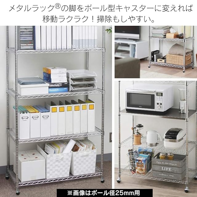 商品名:アイリスオーヤマ ラック メタルラック パーツ キャスター 4個入り ポール径19mm 耐荷重:キャスター1個あたり/静止時:約75kg/走行時:約25kg スチールラック MM-19BC