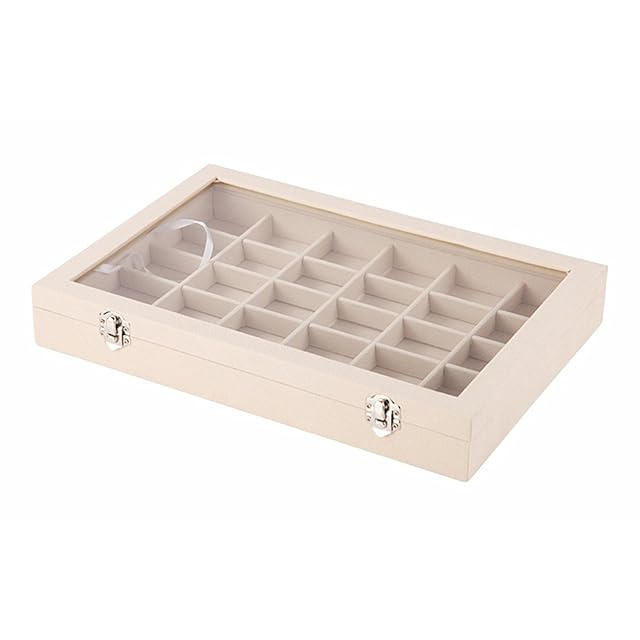 SPIEA 30区画 アクセサリーボックス ベルベット調 ジュエリーボックス ディスプレイ収納ケース (ベージュ)