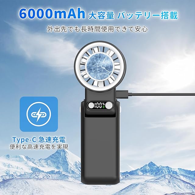 【6000mAh大容量バッテリー・Type-C 急速充電⚡】大容量リチウムバッテリー(6000mAh)内蔵で、外出先でも長時間使用できて安心、Type-C 急速充電便利な高速充電を実現。付属のType-Cケーブルを使えば、外出先やアウトドア、通勤・通学でも安心して使える持ち運びに最適な設計です。