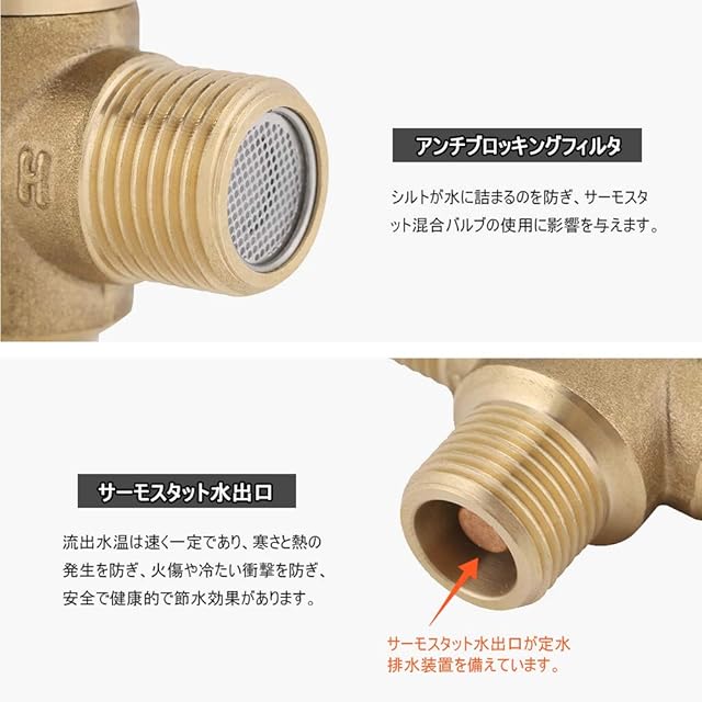 サーモスタット混合バルブ サーモスタットミキシングバルブ 蛇口温度調節 温度制御 黄銅製 多機能 給湯器 シャワー 浴室 お風呂 キッチン 洗面所