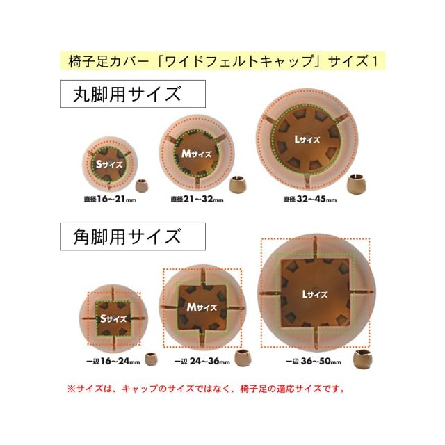 商品名:WAKI ワイドフェルトキャップ 丸脚用 Lサイズ 濃茶 DB 1脚分 GK-713