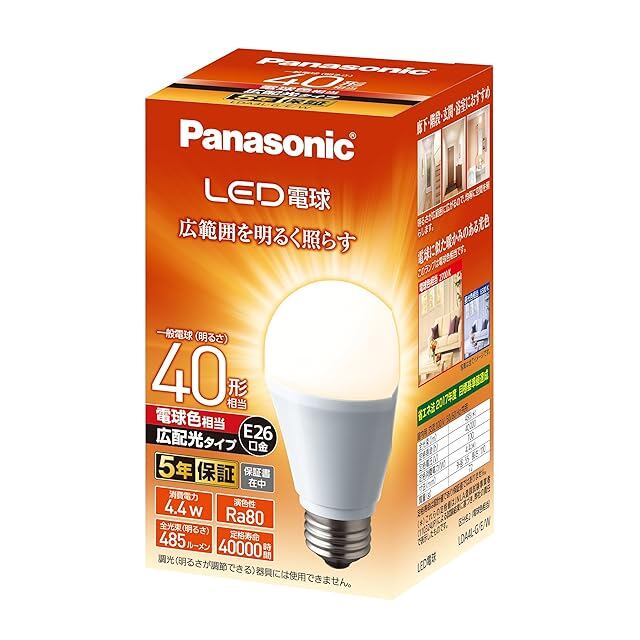 商品名:パナソニック LED電球 口金直径26mm 電球40W形相当 電球色相当(4.4W) 一般電球・広配光タイプ 1個入り 密閉形器具対応 LDA4LGEW