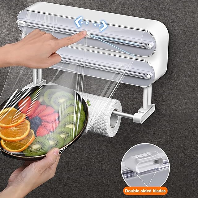 安全なスライドカッター:2つのスロットを備えたキッチンラップオーガナイザーには、双方向の隠しスライドブレードが内蔵されています - 鋭く耐久性があり、各スロットにはカッターが付いており、ストレートカットで長持ちします。 手を傷つけずに安全に操作できます。 ワックスペーパー/アルミホイル/粘着ラップ/ブリキホイル/パーチメントペーパー/ベーキングシートに対応。レイノルズラップ、グラッドプラスチックラップ、サランラップ、カットライト、バウンティなどに適しています。